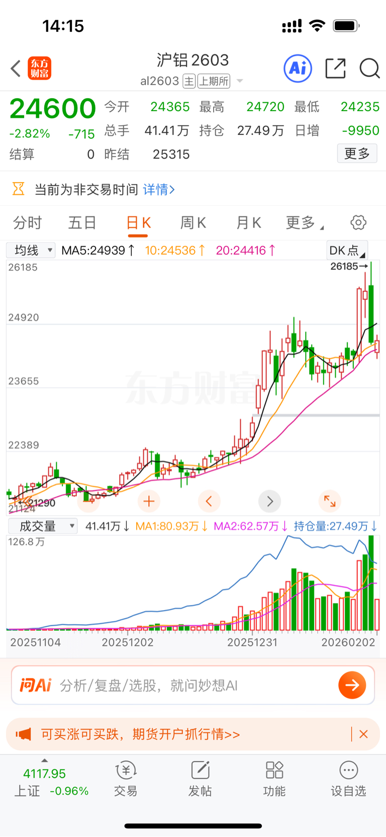 沪铝是红柱而且高于上个交易日收盘价啊,如果不是期货规则和股市不一样,它其实算是红