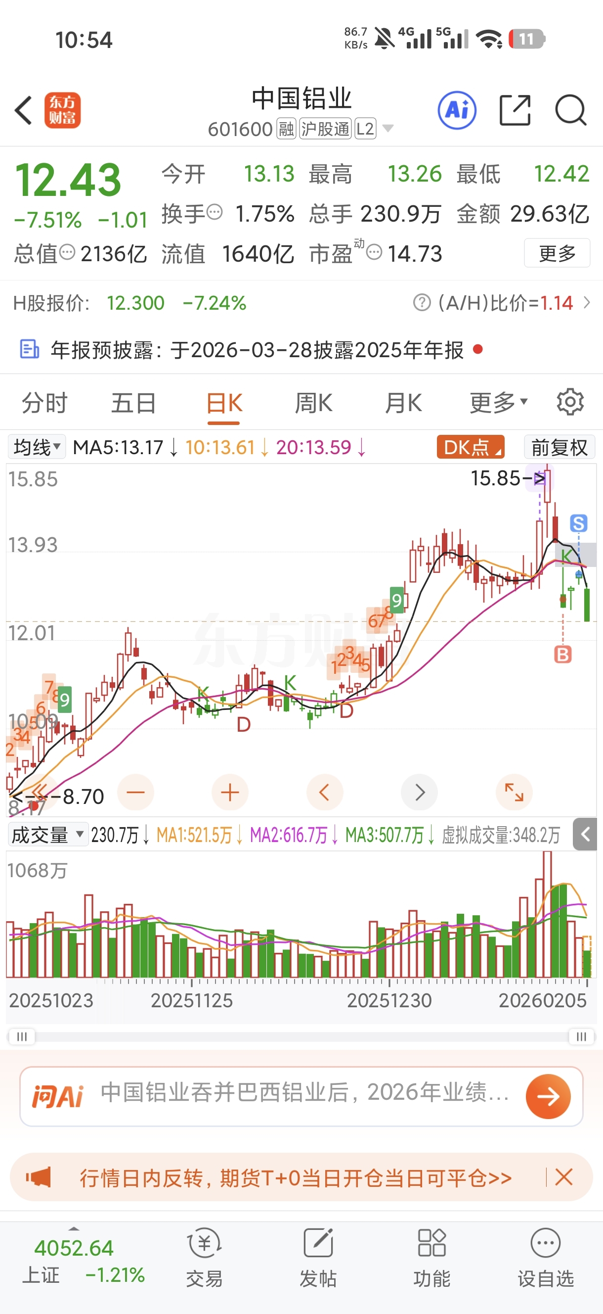 $中国铝业(SH601600)$ 跑慢一点都不行