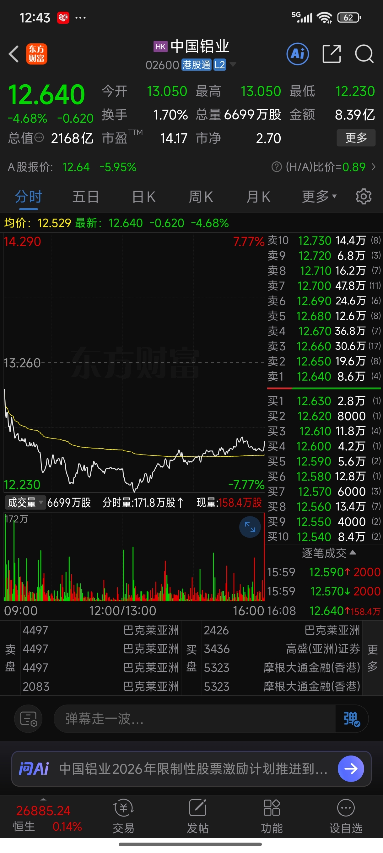 $中国铝业(SH601600)$ 收盘价誓与大陆同甘共苦~