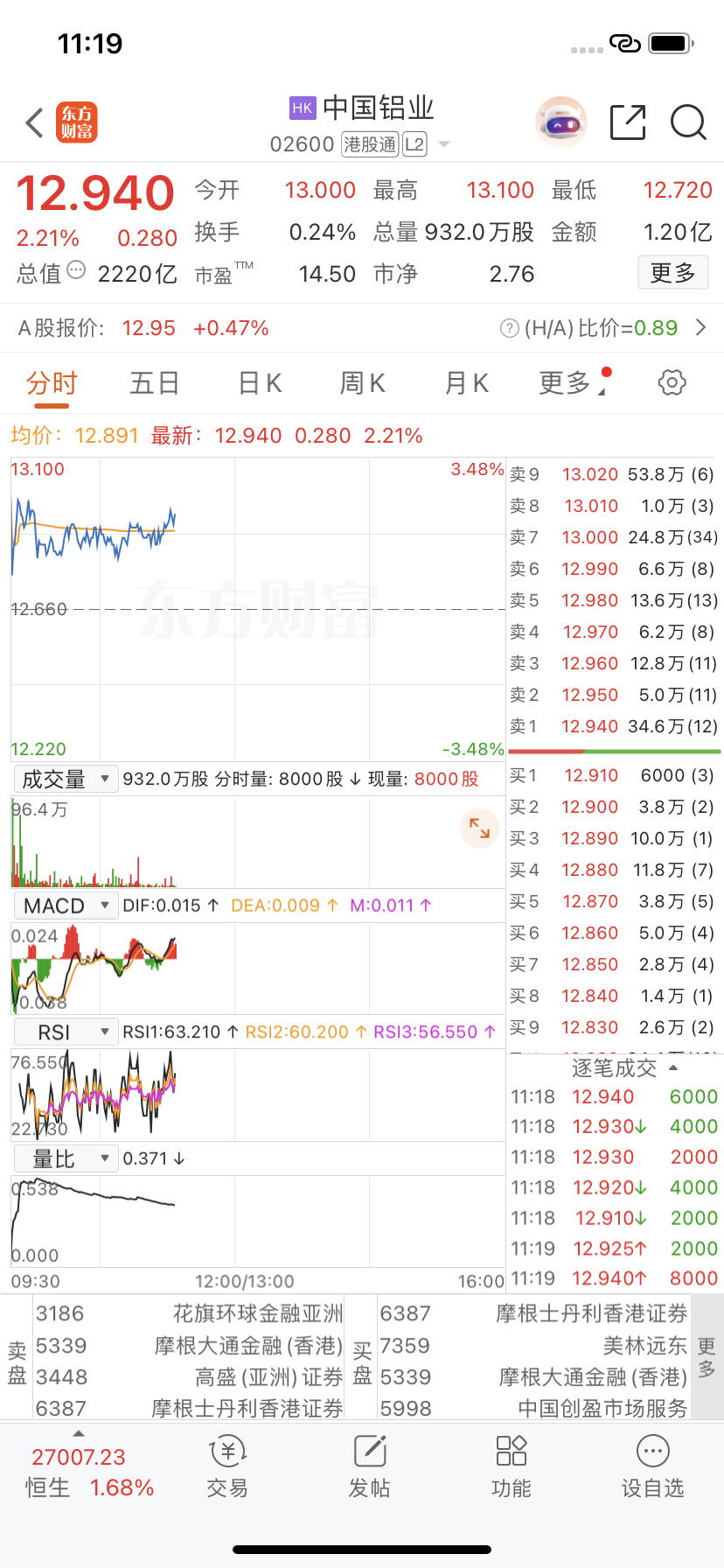 $中国铝业(SH601600)$ 港股都在涨 你在跌?