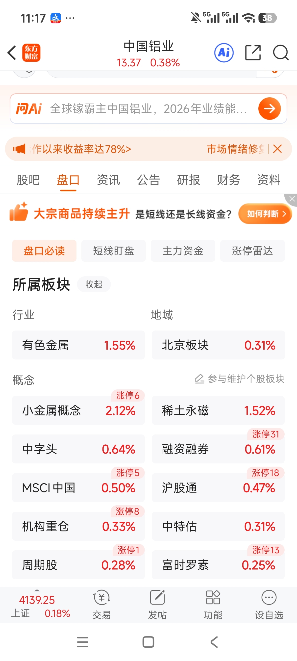 $中国铝业(SH601600)$ 小金属和板块涨成什么样了,港股都比你强,金属镓涨飞了,你也不涨