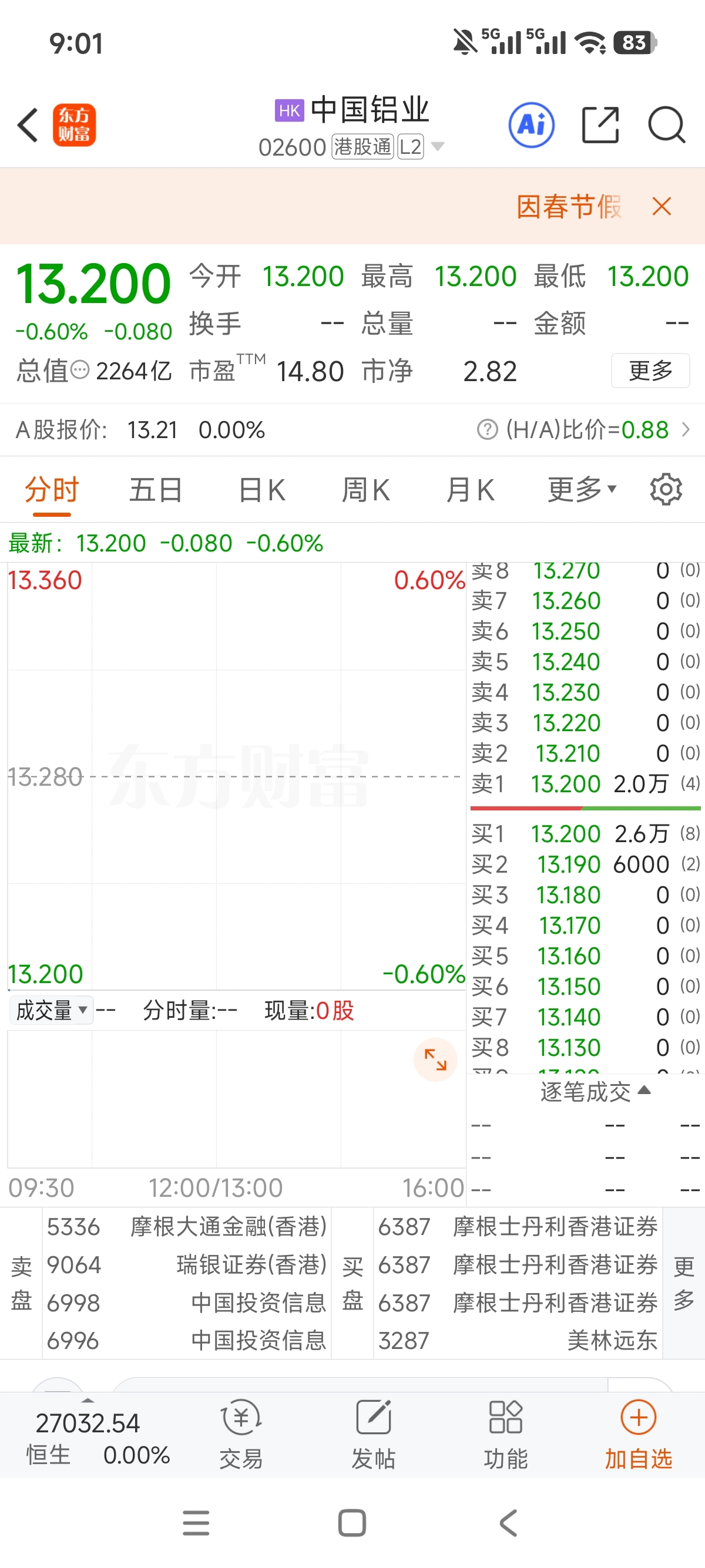 $中国铝业(SH601600)$ 港股没跌多少,感觉今天会翻红
