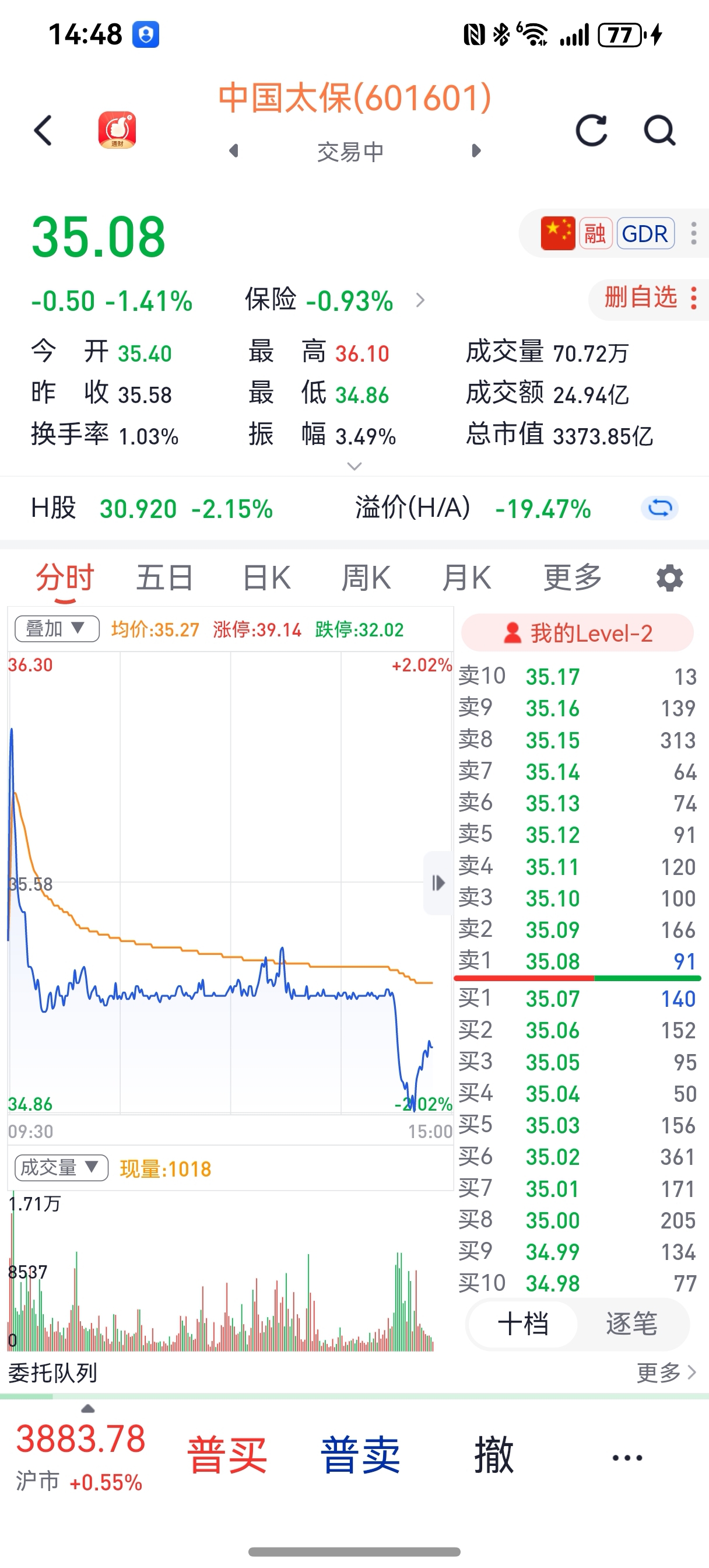 真牛,35元的股票,35.22-35.23织布1两个小时