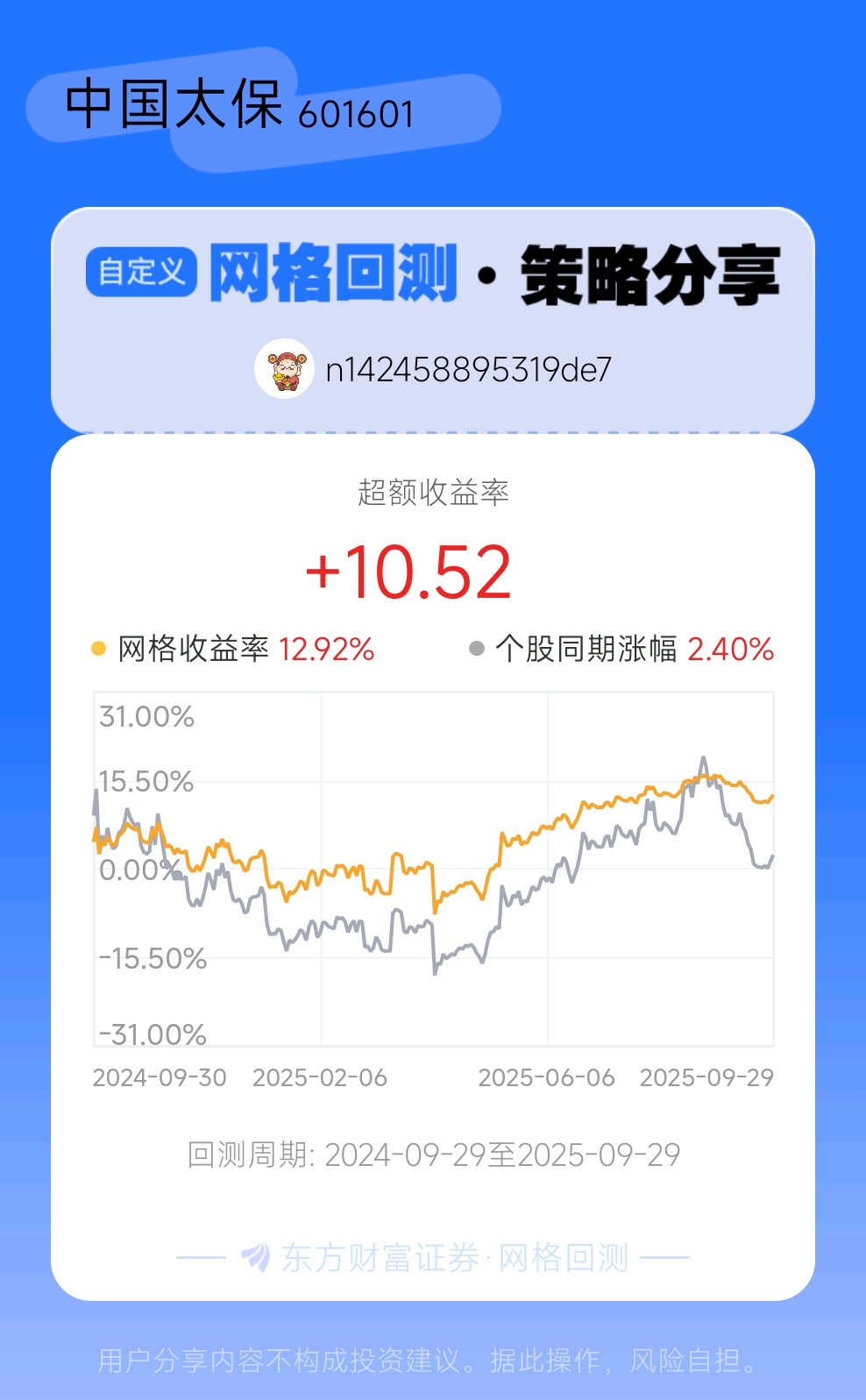 #条件单交流# #网格交易晒单#我使用网格交易回测了最关心的个股,朋友们走过路过看看我的收益~$中国太保(SH601601)$
