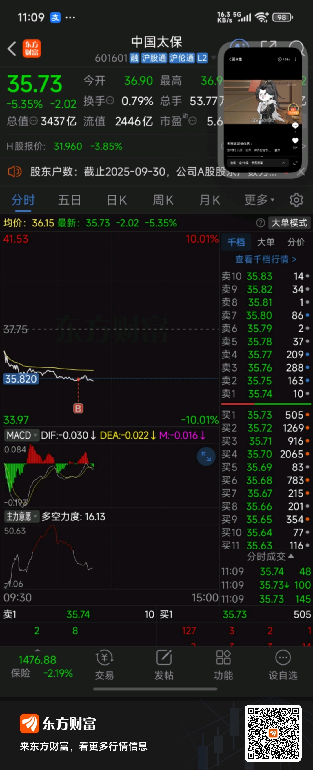 $中国太保(SH601601)$  还以为能低吸,结果成为接盘侠