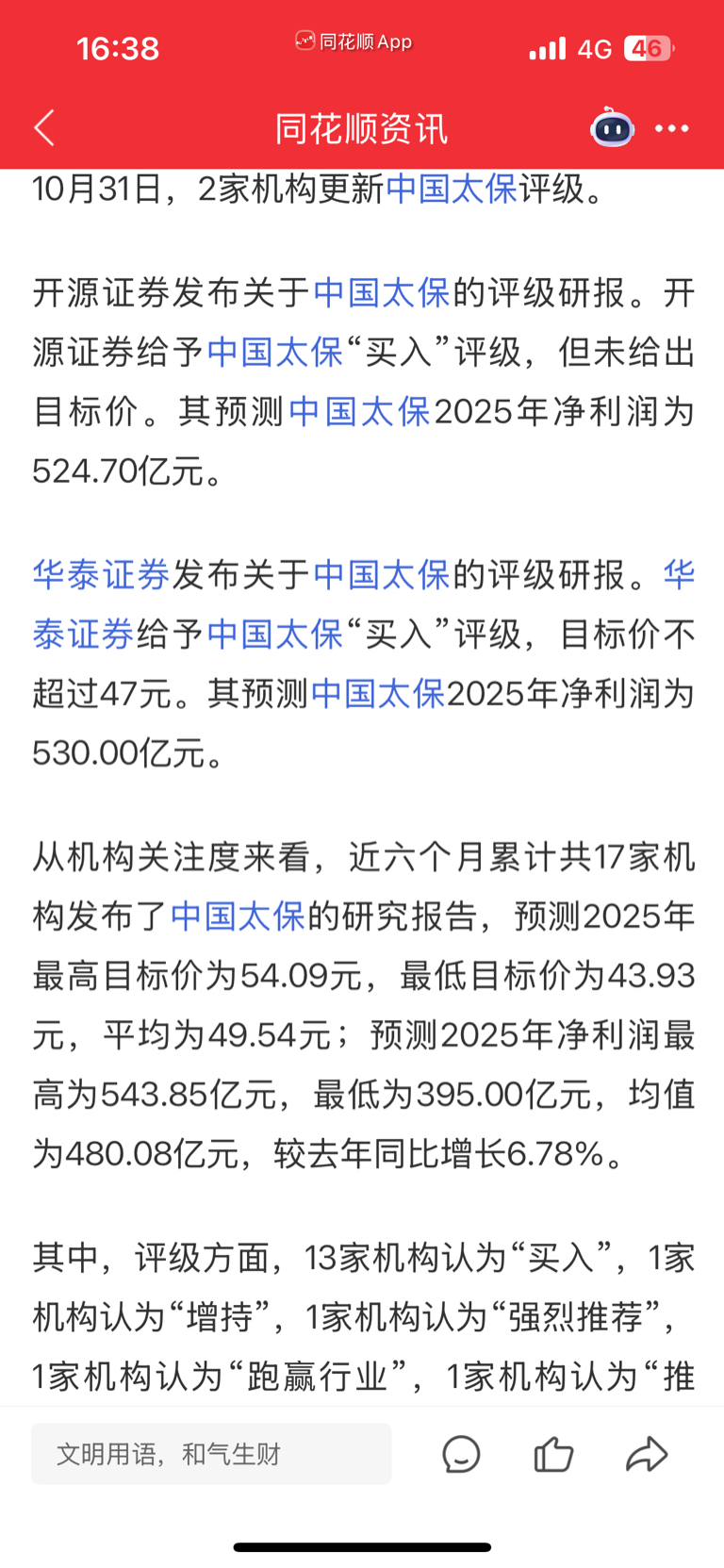 $中国太保(SH601601)$ 我只求40元 40元我就满意了。今天35。亏5个点!!!!