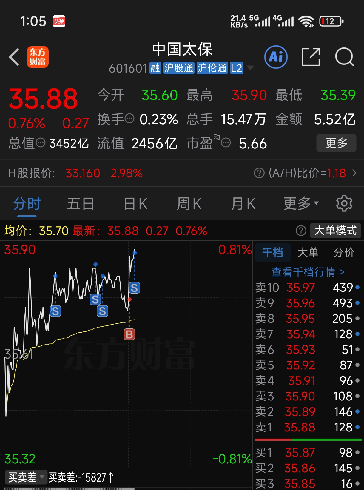 $中国太保(SH601601)$ 笑的不行,真有人送折价筹码,我直接拉满做t