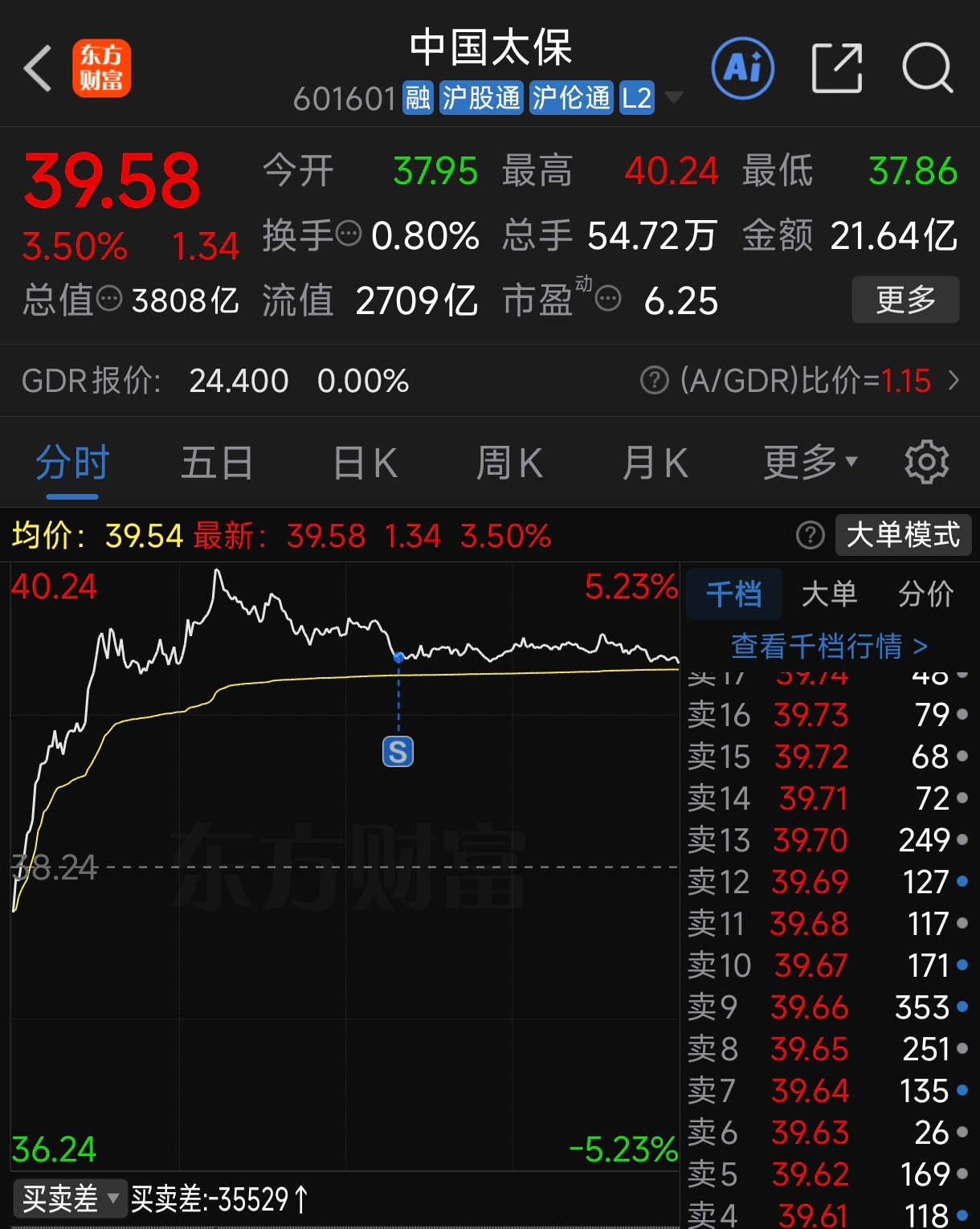 $中国太保(SH601601)$ 34-35买的太保,今天开始减仓了