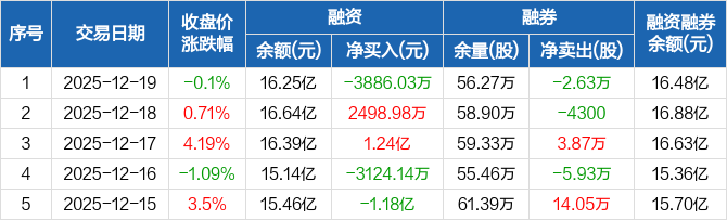 中国太保:融资净偿还3886.03万元,融资余额16.25亿元(12-19)