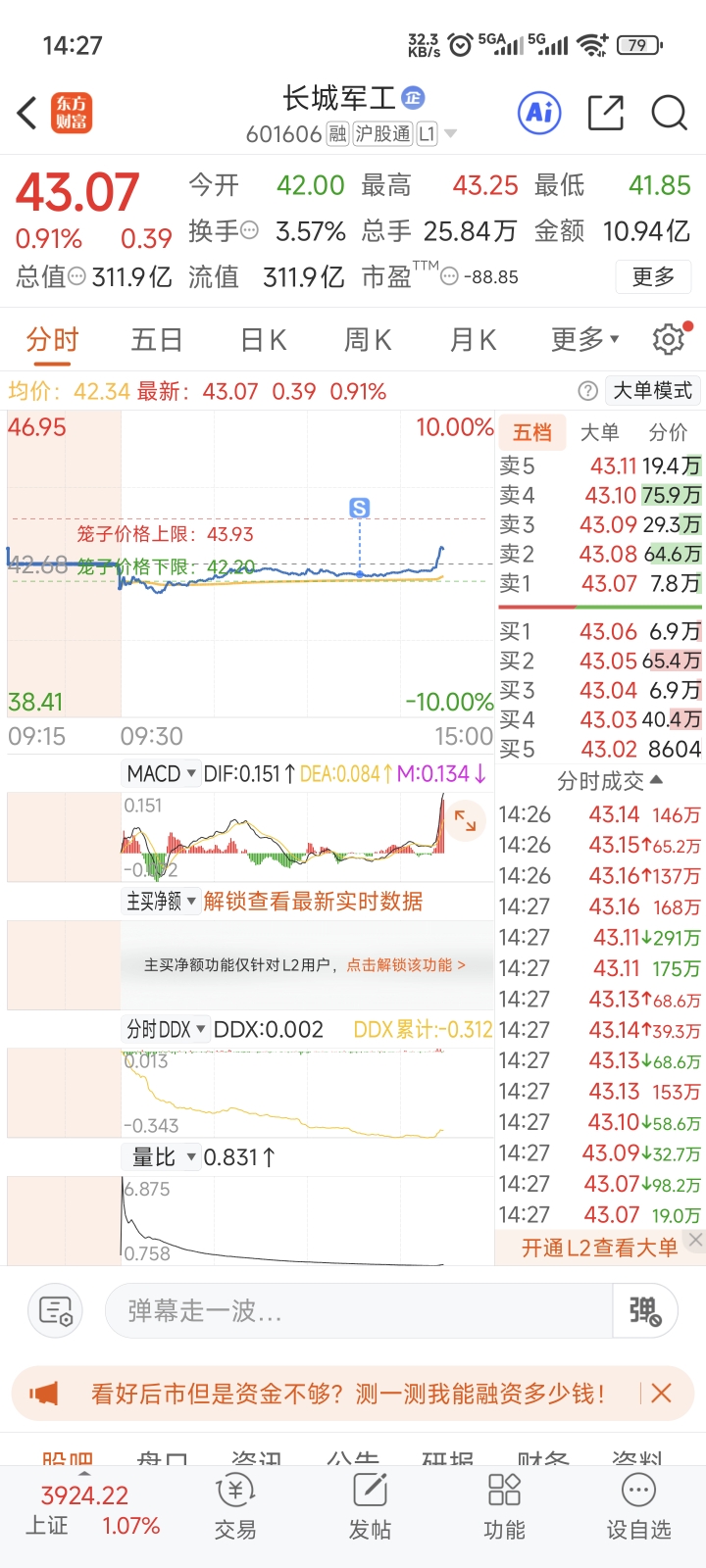 $长城军工(SH601606)$ 又卖飞了
