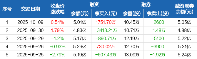 长城军工:融资净买入1751.7万元,融资余额5.01亿元(10-09)