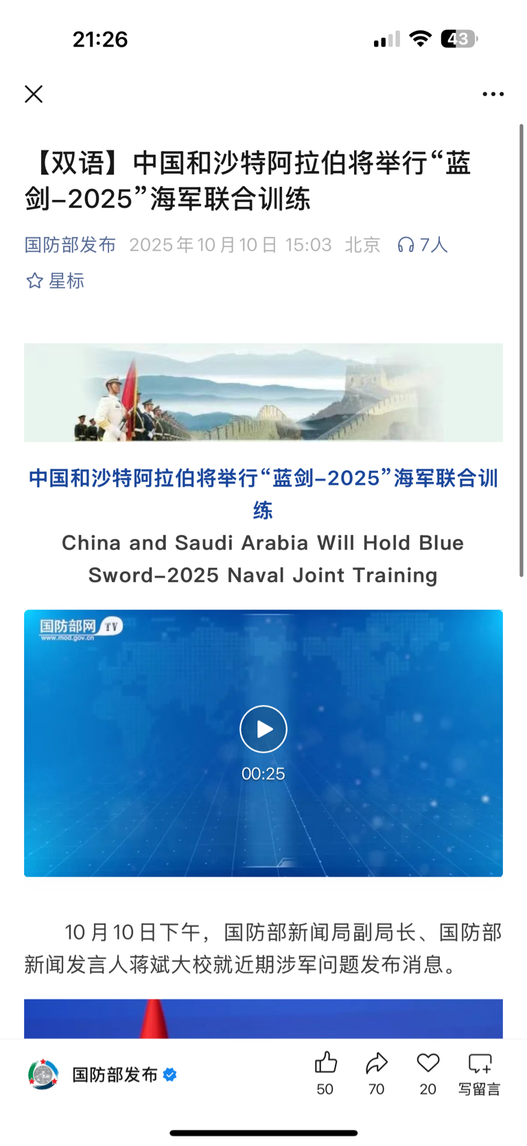 $长城军工(SH601606)$ 中国和沙特阿拉伯将举行“蓝剑-2025”海军联合演习!