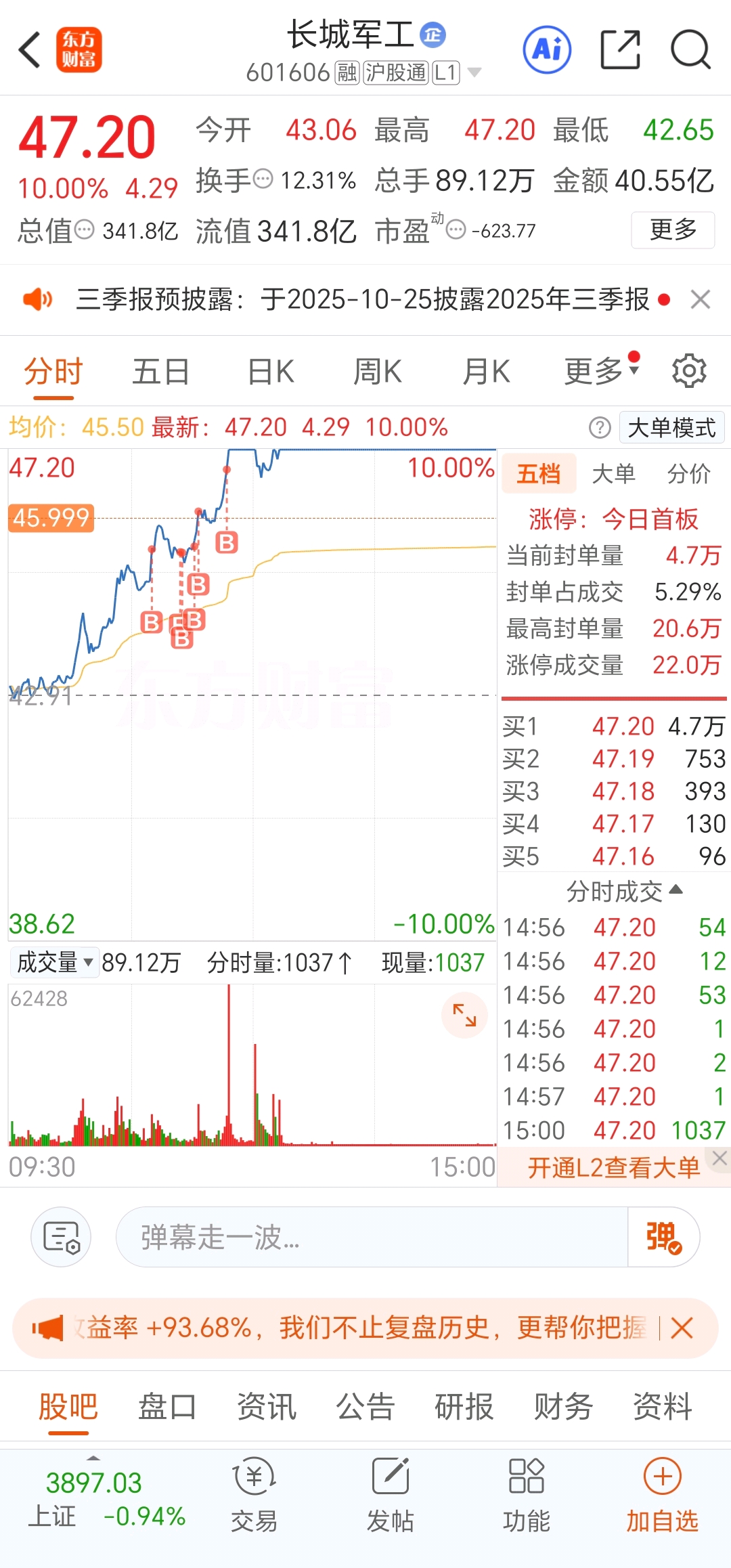 $长城军工(SH601606)$ 买啥亏啥,买个涨停,外围大跌,周一还得亏