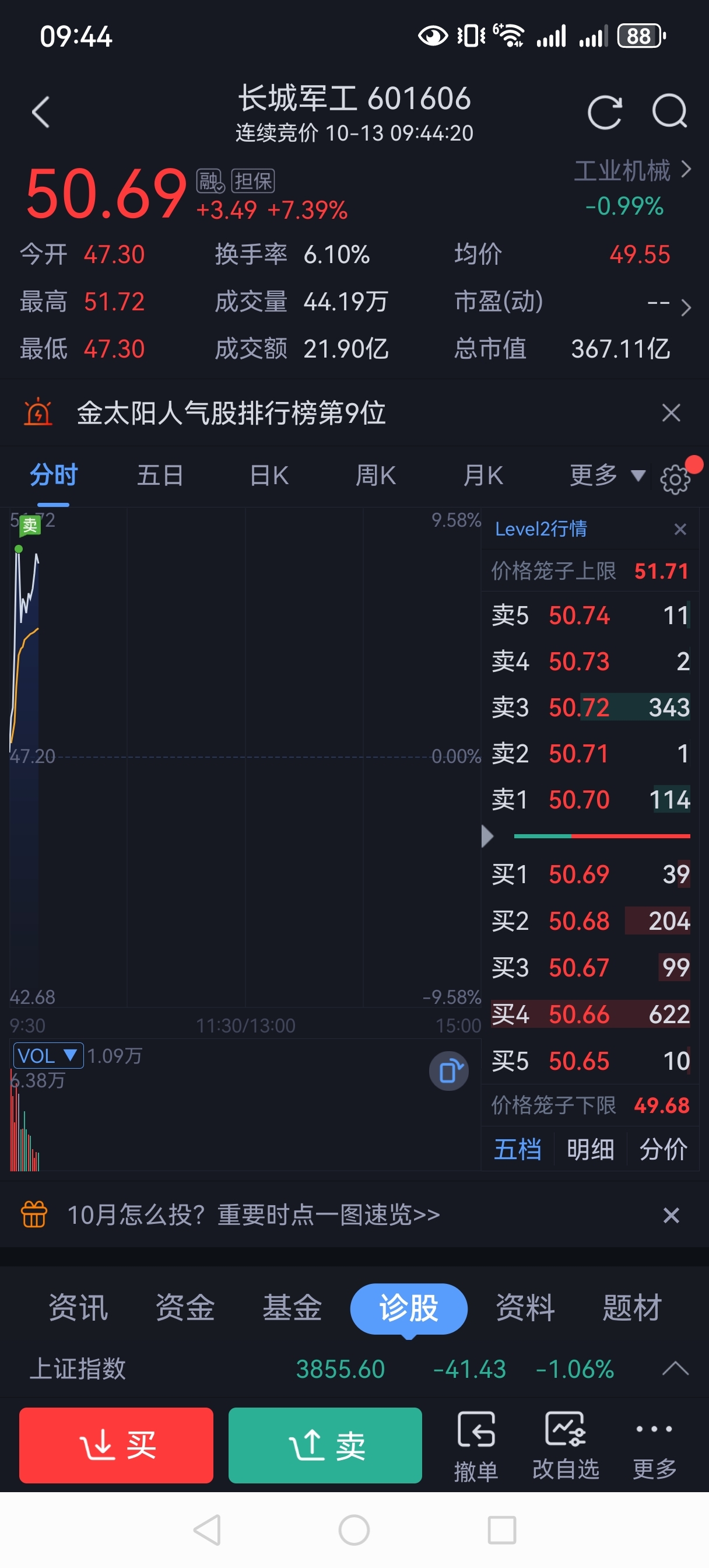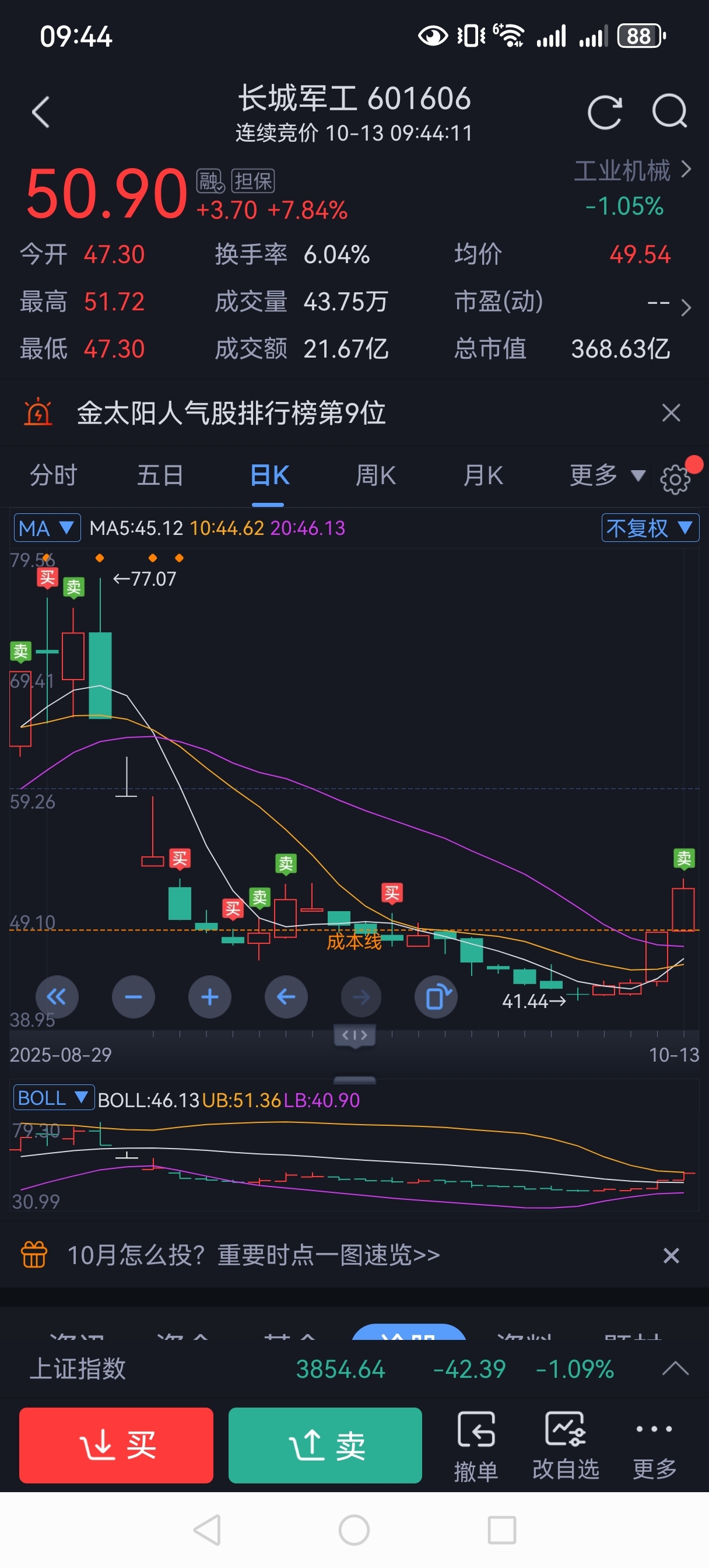 连续二日大涨,今日早盘放货。51.70出。接近最高价。运气不错。