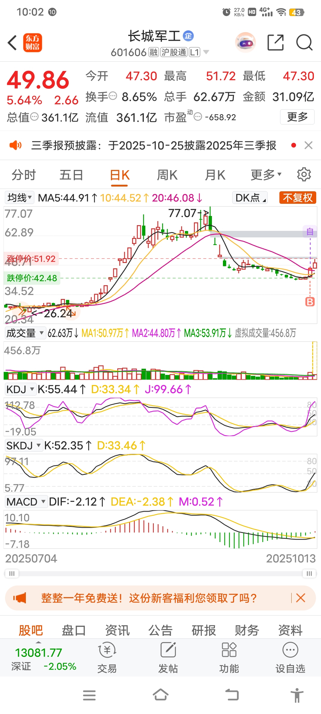 $长城军工(SH601606)$ 顺其自然