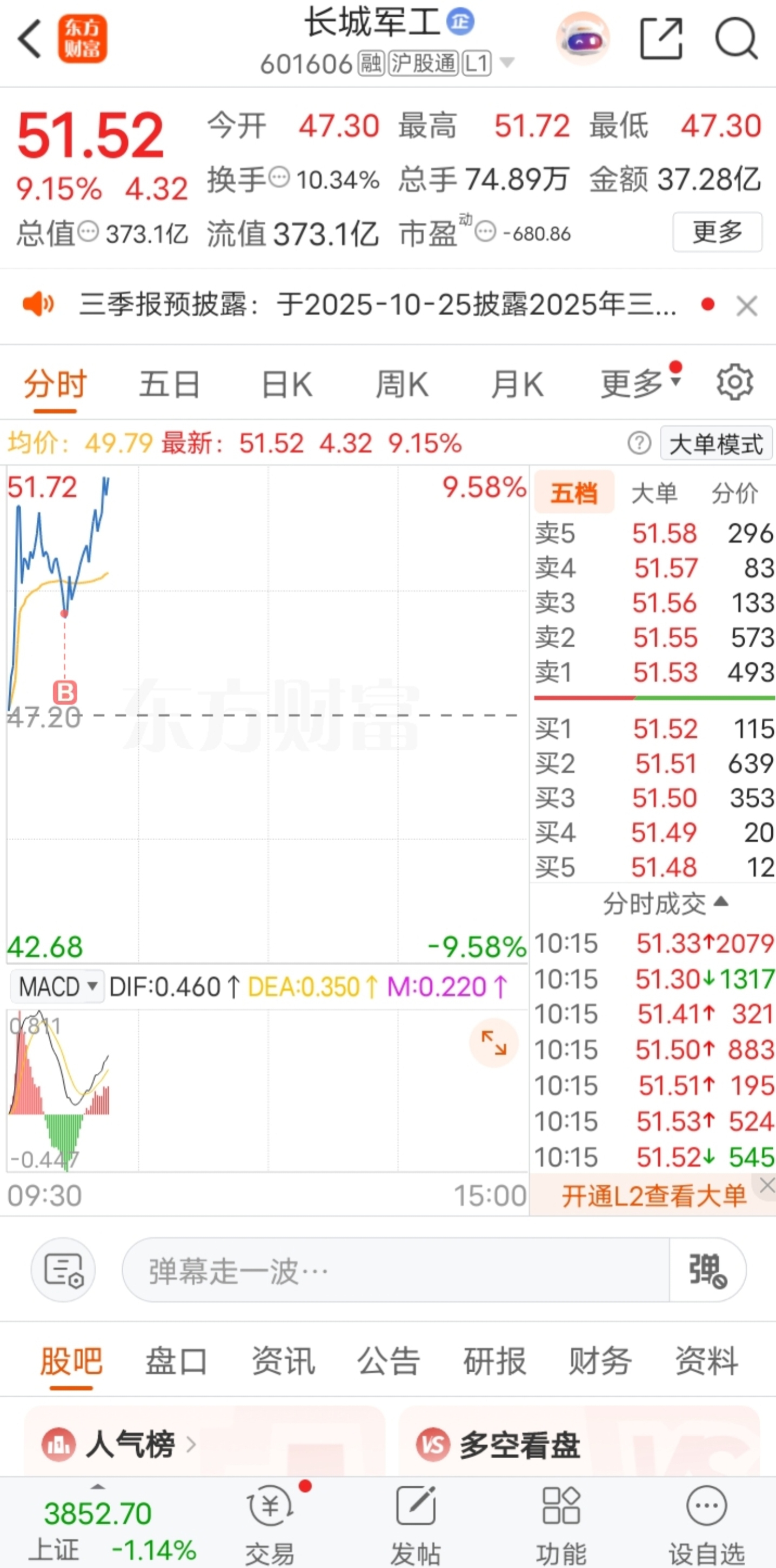 低吸介入了$长城军工(SH601606)$ 即将封板,给我冲冲冲