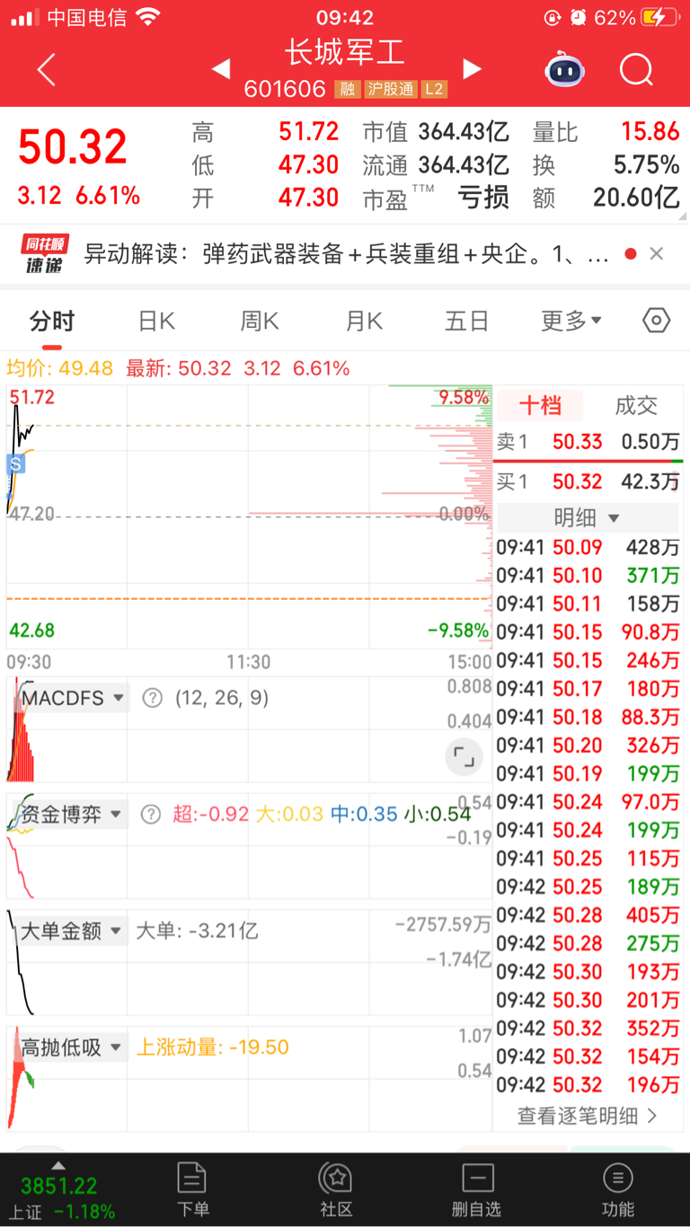 $长城军工(SH601606)$ 卖飞,出去外面挨打了