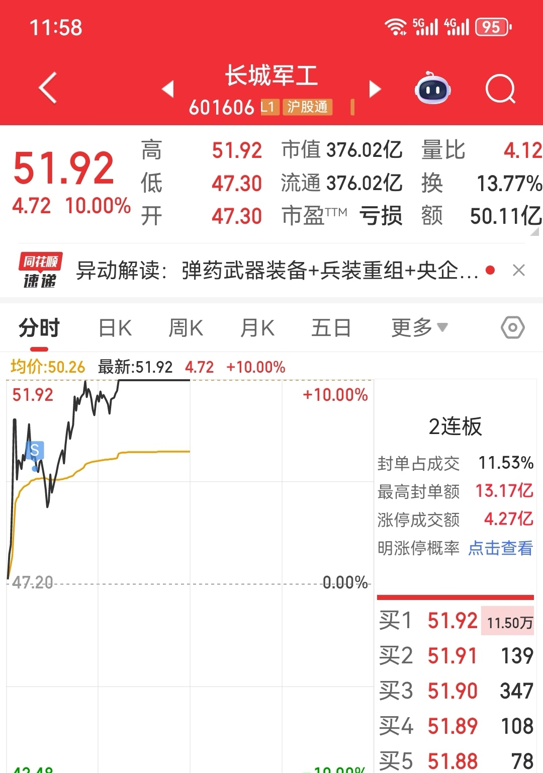 $长城军工(SH601606)$ 虽然被洗出去了,还是感谢主力!