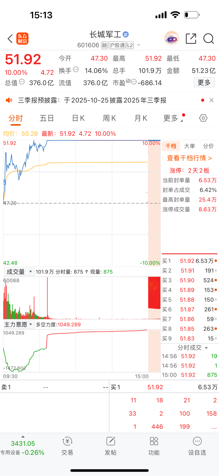 $长城军工(SH601606)$ 我是真服我自己阿。