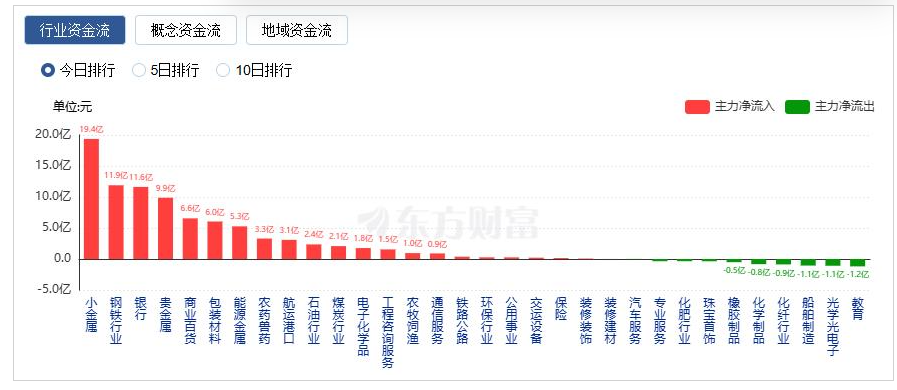 盘面上,市场热点轮番活跃。稀土永磁板块持续走强,银河磁体、中国稀土、北方稀土等多股涨停。芯片产业链也掀起涨停潮,新莱应材、凯美特气、至纯科技等10余股涨停。有色金属板块再度活跃,中国瑞林、西部黄金3天2板。板块方面,稀土永磁、有色金属、半导体等板块涨幅居前,汽车零部件、游戏等板块跌幅居前。行业紫金方面,截至收盘,小金属、钢铁行业、银行等净流入排名靠前,其中小金属净流入19.36亿。