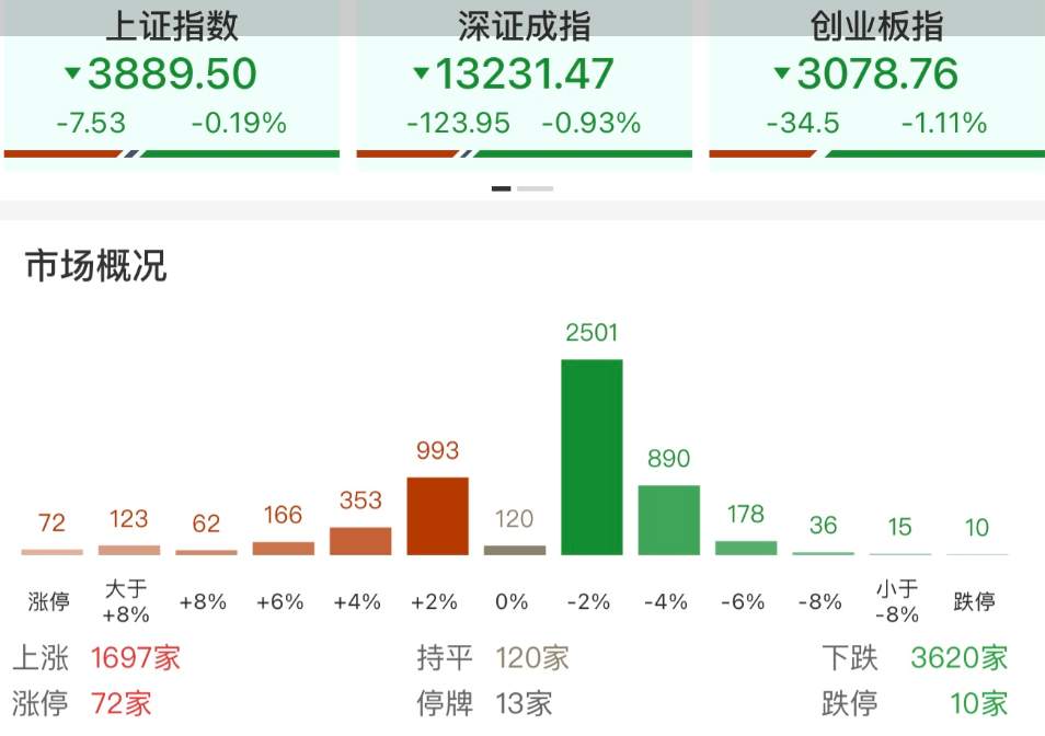 今天市场全天震荡回升,三大指数低开高走,科创50指数低开近3%,午后翻红大涨逾1%。截至收盘,沪指跌0.19%,深成指跌0.93%,创业板指跌1.11%。沪深两市成交额2.35万亿,较上一个交易日缩量1609亿。盘前文章说过,如果今天指数开盘低开的太多,那就有可能是一步到位的调整,今天指数低开高走刚好验证了这个观点。