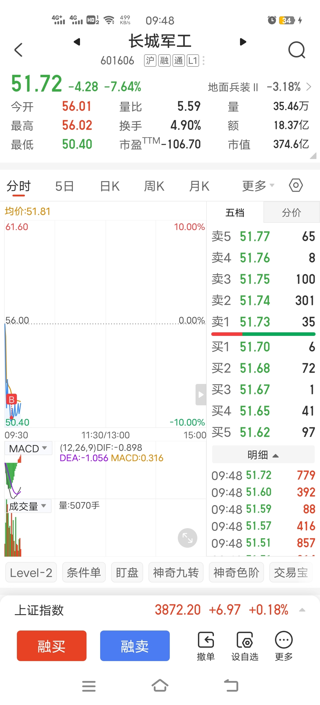 $长城军工(SH601606)$ 两天赚了20个点可以了,不贪心,今天爆量,没有大资金换手做主动封板,底部获利筹码峰出现松动,今天出了,留100股纪念,看看今天是否验证,祝愿留下的兄弟们继续连板!发发发