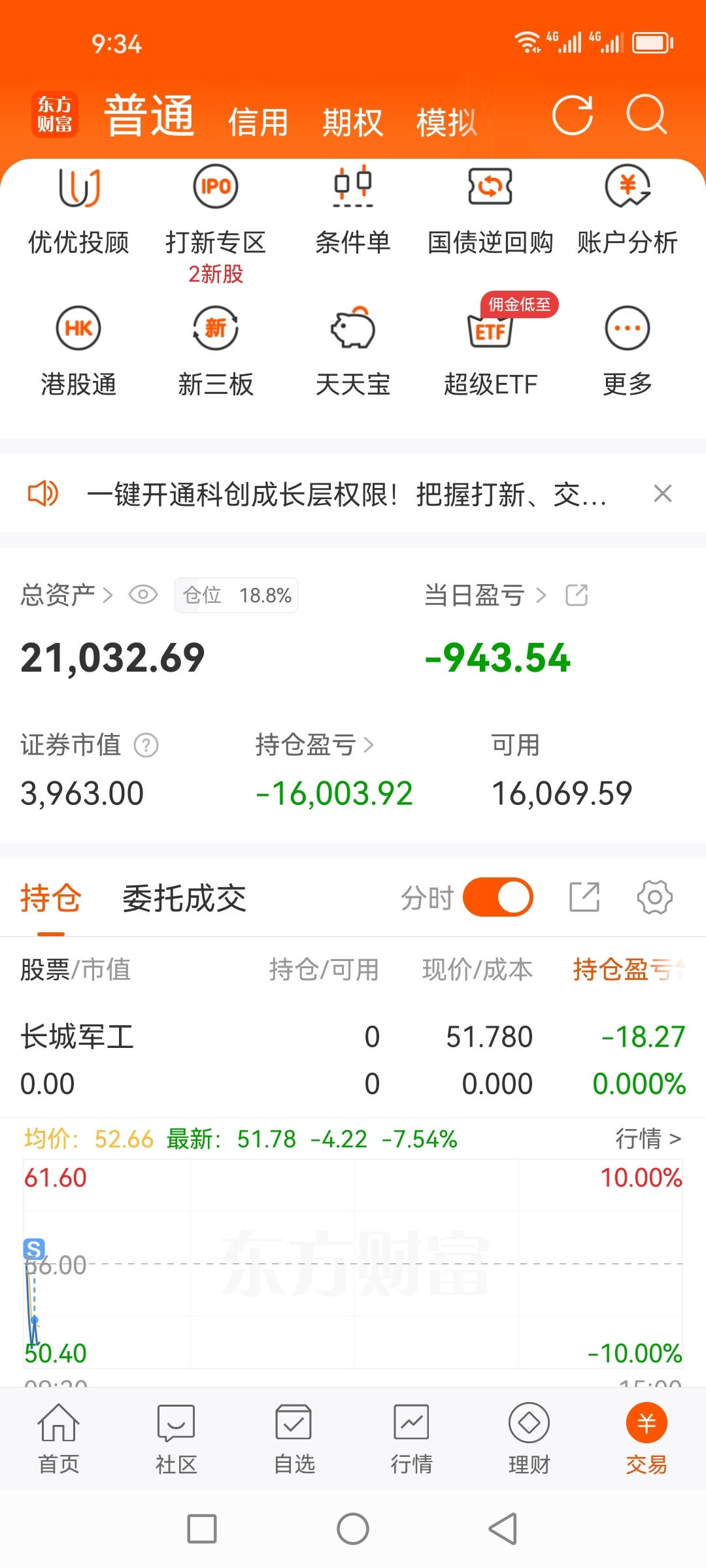 $长城军工(SH601606)$ 昨天赚一千,今天还亏了18元,这股票真TM的不能玩