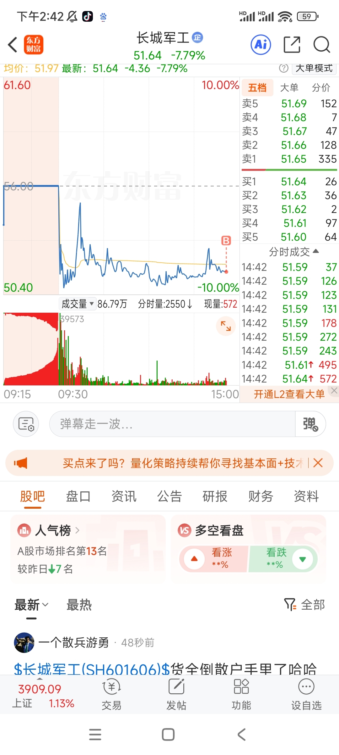 $长城军工(SH601606)$ 建仓明天吃大肉。我专门吃带血筹码建仓