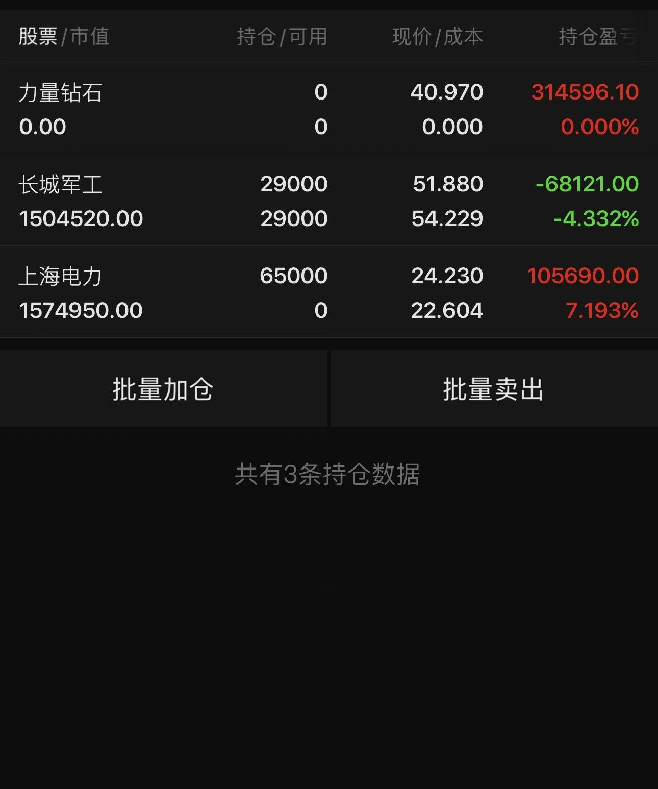 今日建仓上海电力,继续持仓长城军工#收盘点评# $长城军工(SH601606)$