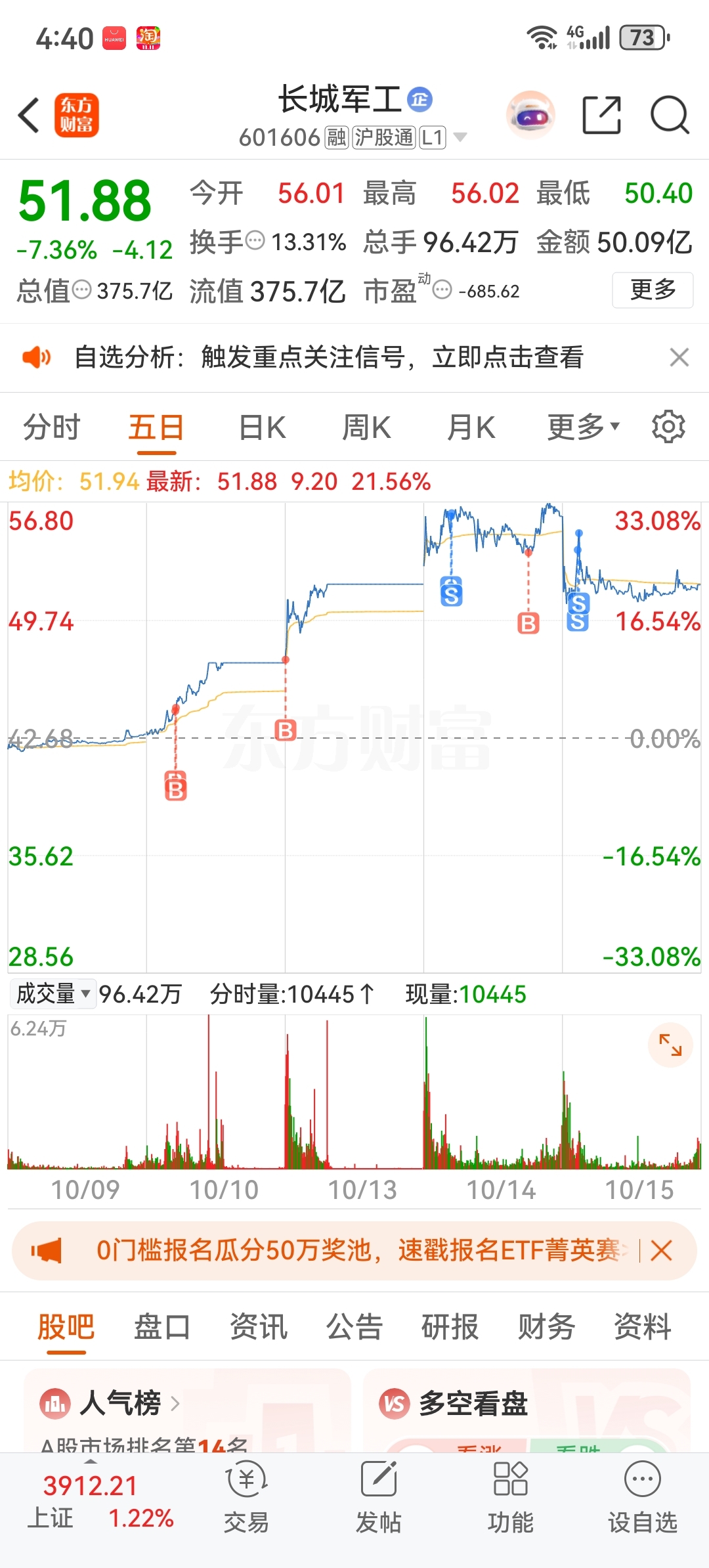$长城军工(SH601606)$ 感谢长城军工让我这次大赚
