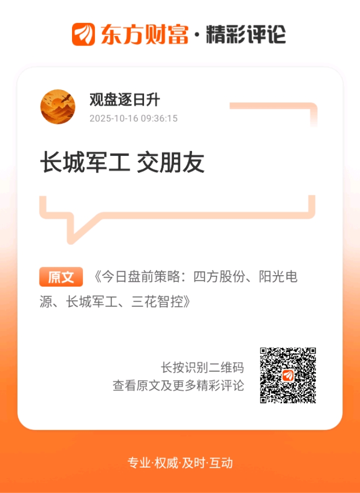 $长城军工(SH601606)$//@观盘逐日升 :长城军工 交朋友