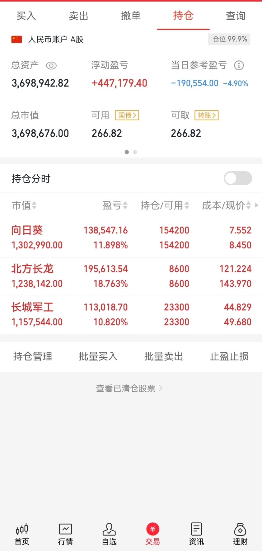 目前仓位没有变动还是北方长龙,$长城军工(SH601606)$ ,$向日葵(SZ300111)$ ,下周看看有没有好事发生