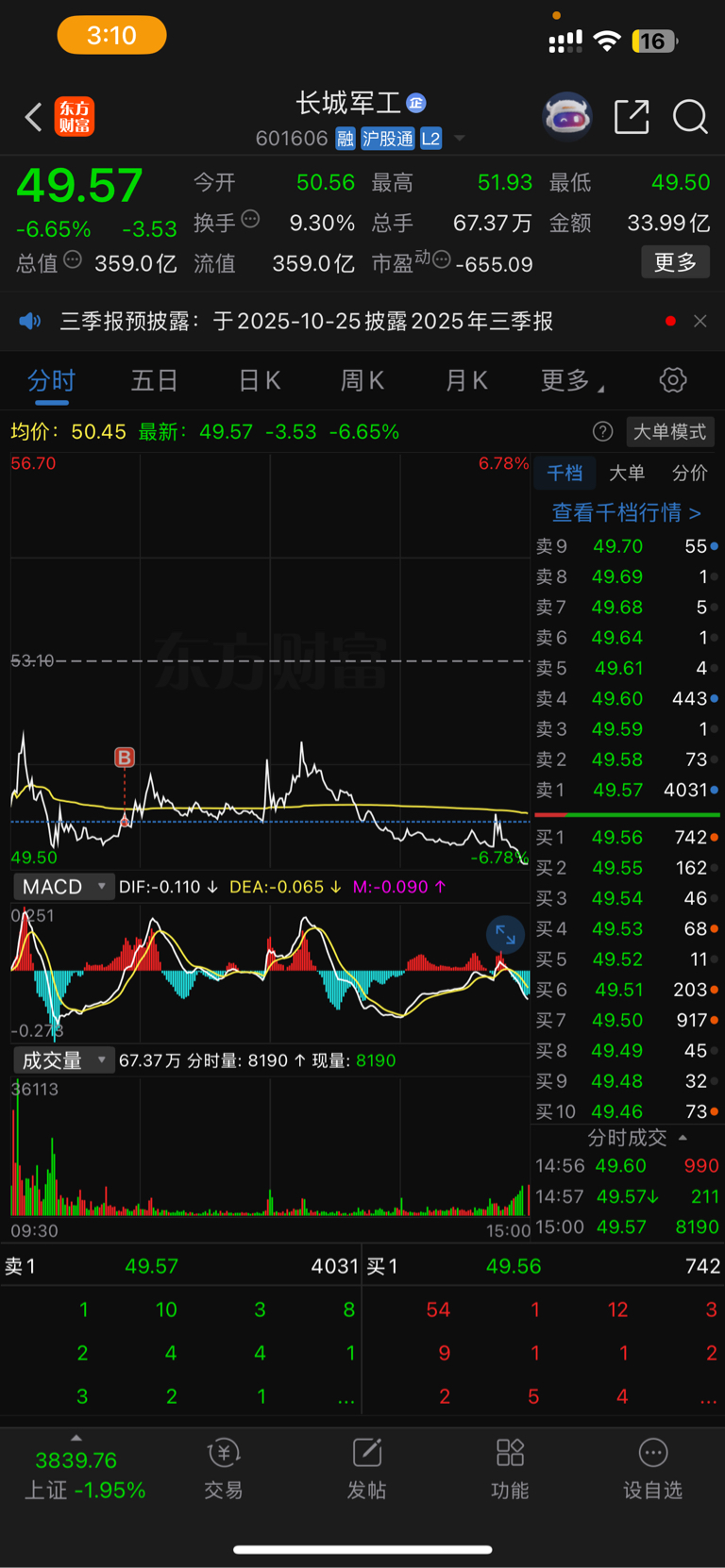 $长城军工(SH601606)$ 这都能被套真牛