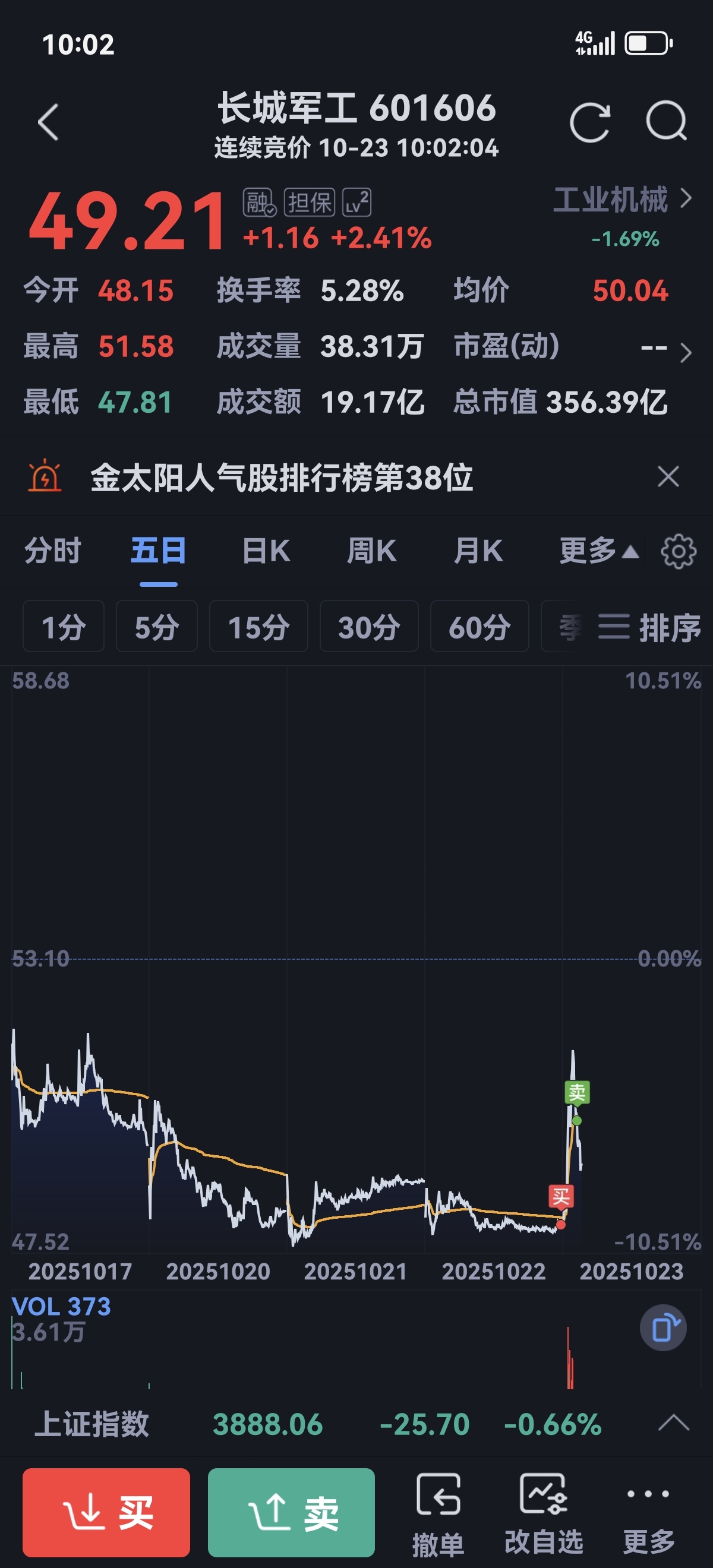 $长城军工(SH601606)$ 交易最重要的就是纪律,不管少赚多少,50不行咱就撤
