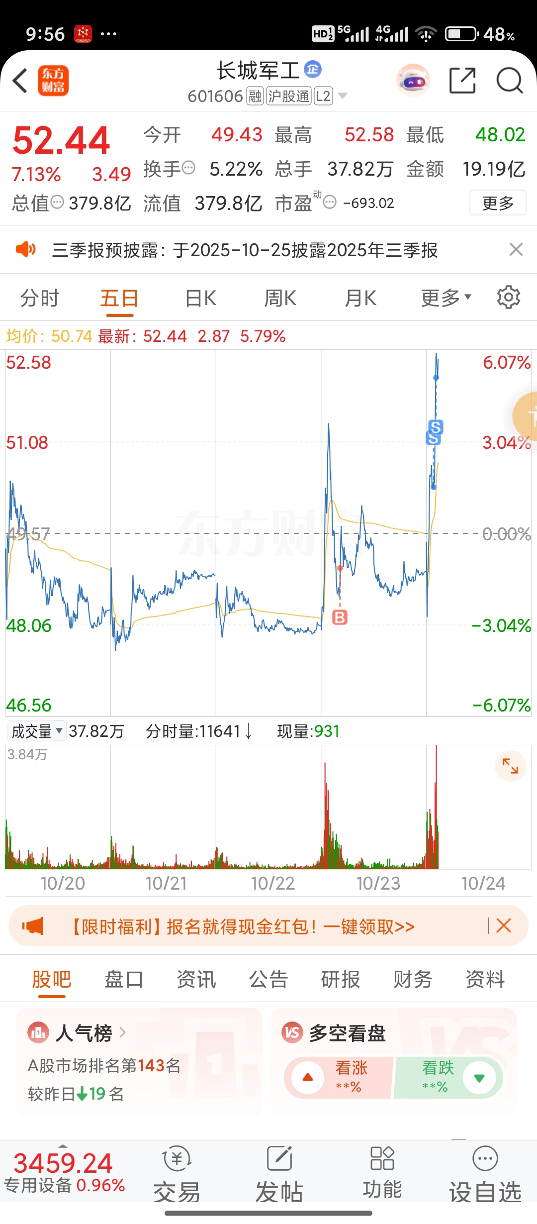 $长城军工(SH601606)$ 果然还是得我卖掉才能涨吗