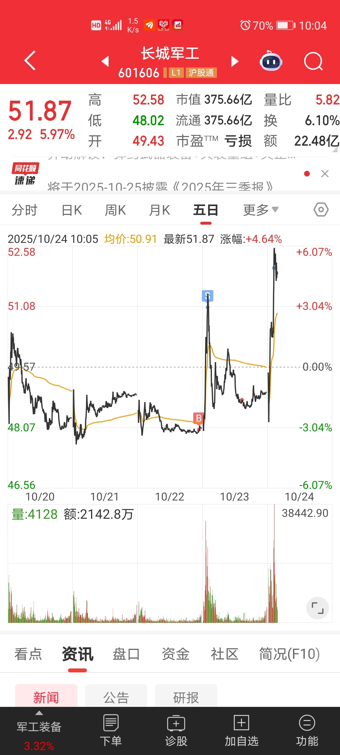 $长城军工(SH601606)$ 完美收工