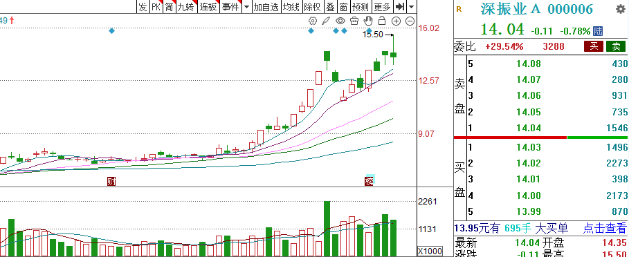 这票的逻辑无非也是继续看好深圳国改的续涨机会,无奈开盘这个板块就分化了,也注定了深振业A早上一轮逆势冲高之后大幅补跌了,一字板的深物业、深纺织A犹能如此,深振业A走调整就更加不足为奇了。相对而言,深振业A今天的跌幅还没那么大,收得是螺旋桨,上有压力下有支撑,这种结构一旦出现反包就还能打开预期。这家公司是深圳国Z控股的地产平台,核心亮点在于手握大量未上市优质Z产与城投资产。此前股价拉升的核心逻辑就是Z产并购,它也是该逻辑下最早启动的核心龙头。刚出台的深圳并购重组方案要求将未上市优质Z产快速注入上市平台,作为地产上市平台核心的它,想象空间巨大。技术面看,整体趋势向上,四季度是关键节点,布局它这类深圳国资背景的并购重组标的,能提前锁定 2026年产业升级与资本运作的双重增长逻辑,并购重组将成为企业实现跃升的重要跳板。这票今天在5日线附近再度获得支撑,并且跟昨天的K线形成金针探底,说明下方的支撑力度很强,周一看有无修复反包机会再说。