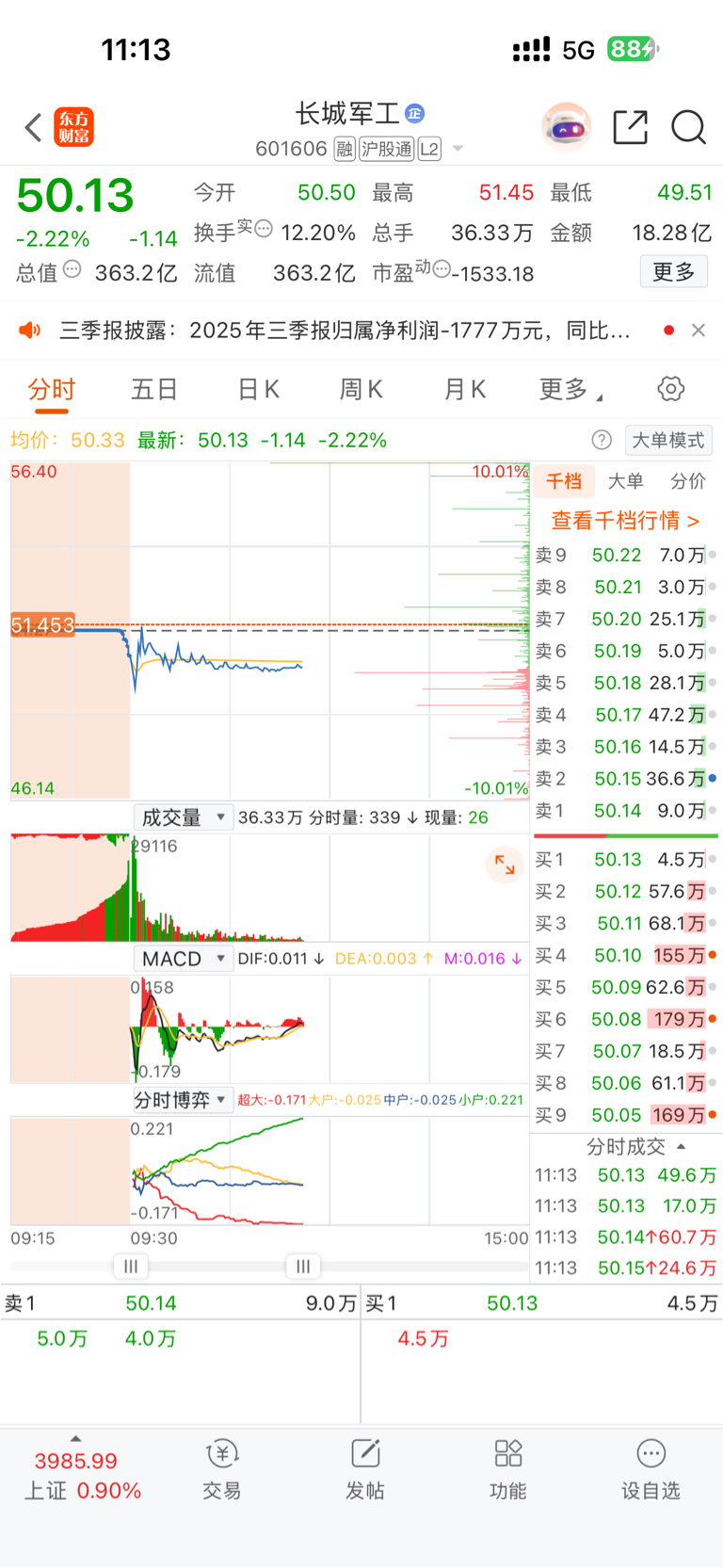 $长城军工(SH601606)$ 不想t了 本在这给个机会让走吧