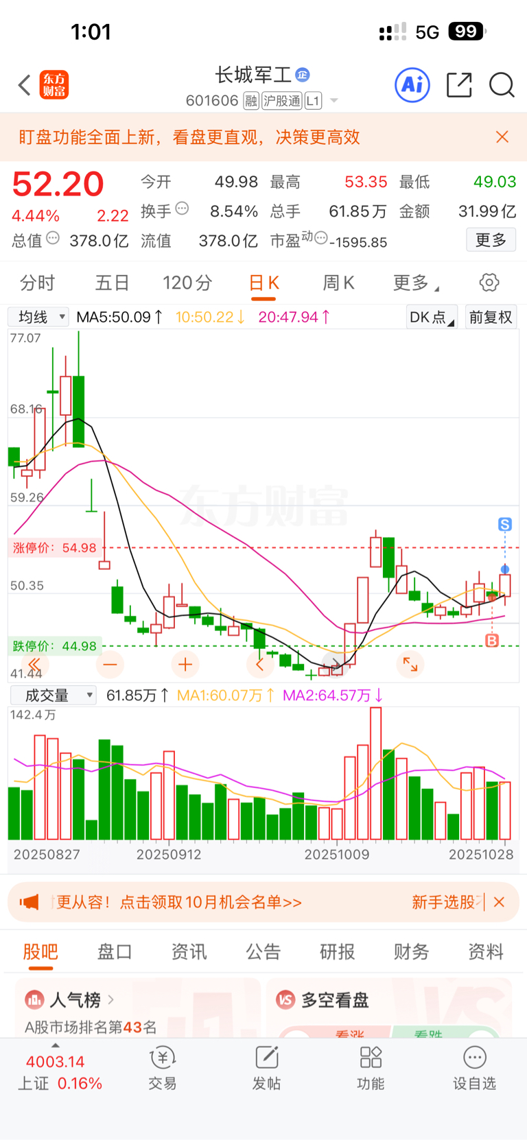 $长城军工(SH601606)$ 大曾子选股能力超强