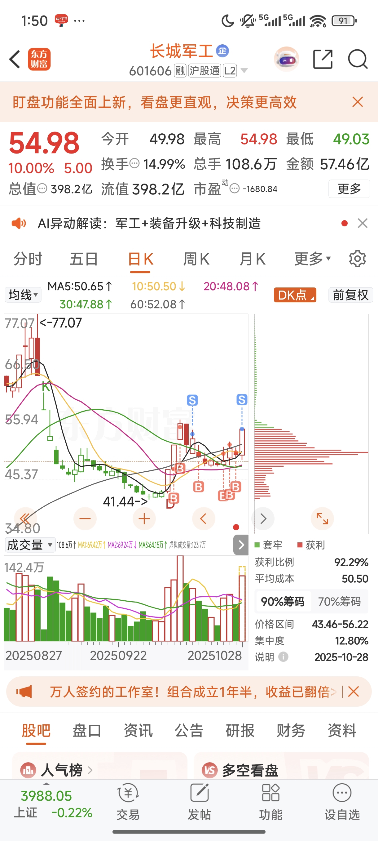 $长城军工(SH601606)$ 卖了和尔泰和兆易来操作的你,还好没让人失望