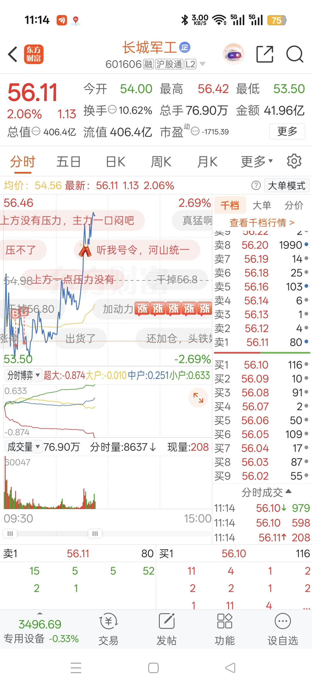 $长城军工(SH601606)$ 胆子大才能吃肉
