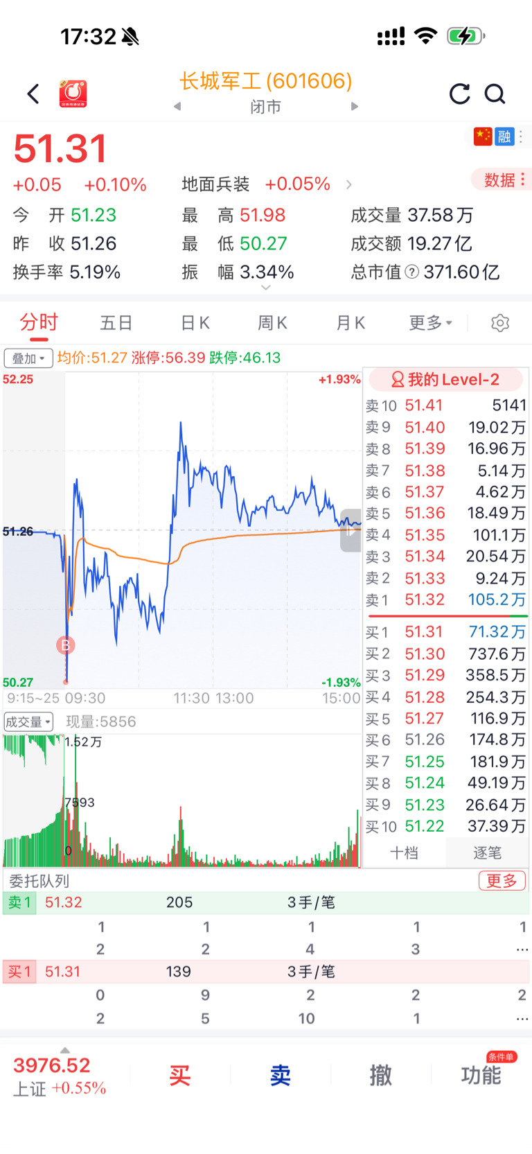 $长城军工(SH601606)$ 吸到最低处 明天有没有小肉吃?