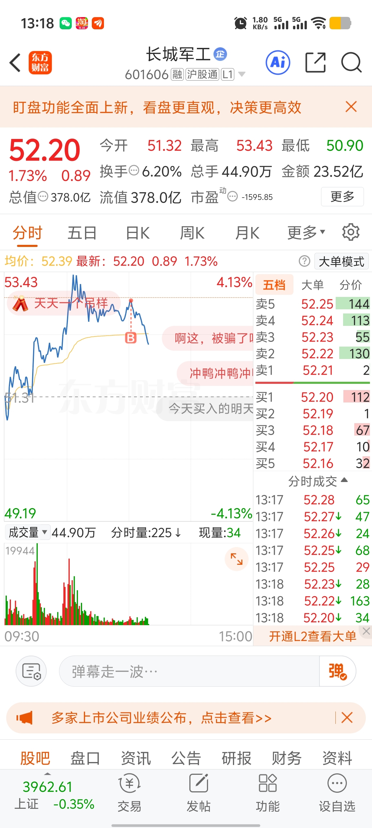 $长城军工(SH601606)$ #炒股日记# 兄弟们实在对不住了,都怪我进来了