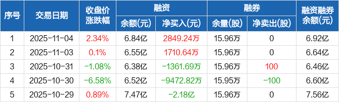 长城军工:融资净买入2849.24万元,融资余额6.84亿元(11-04)