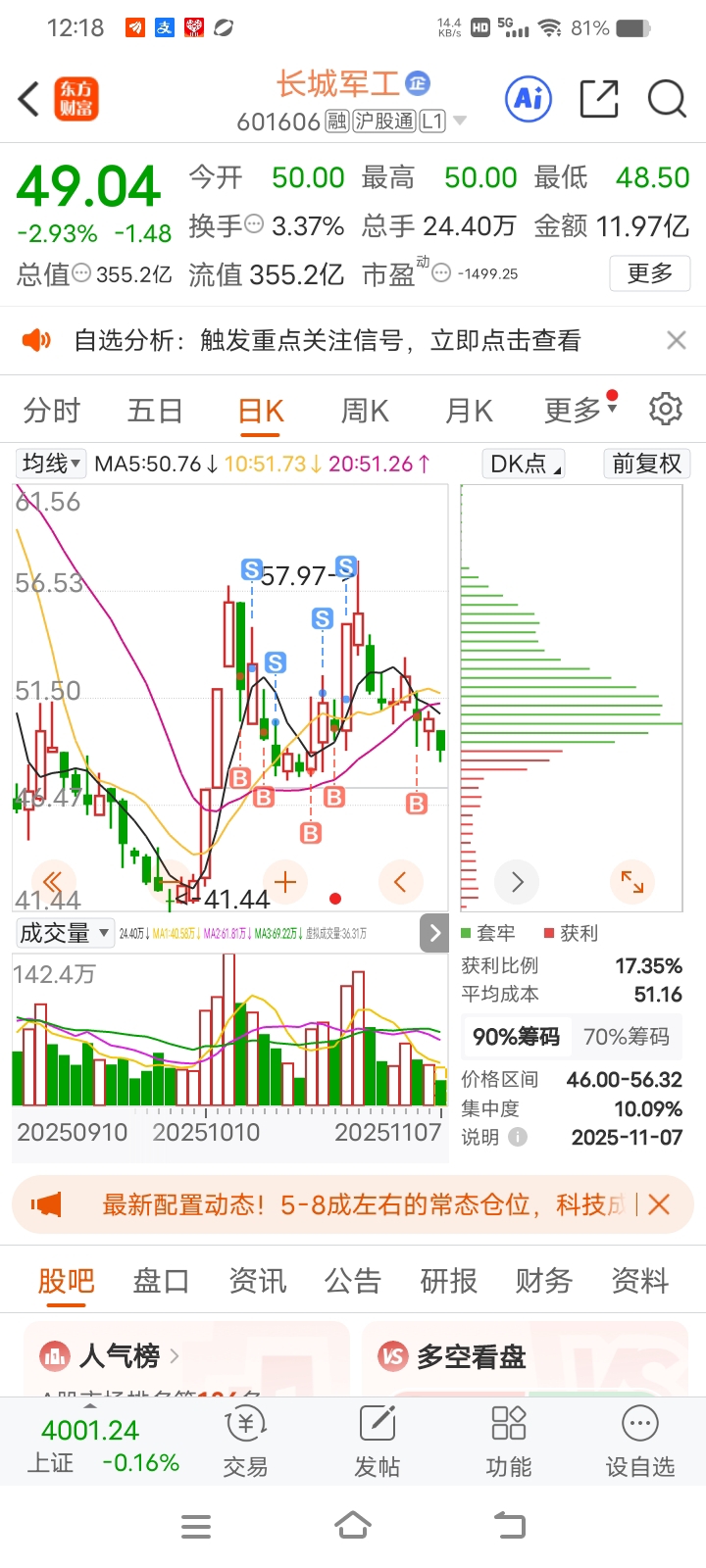 $长城军工(SH601606)$ 认亏出局,以后不来了。
