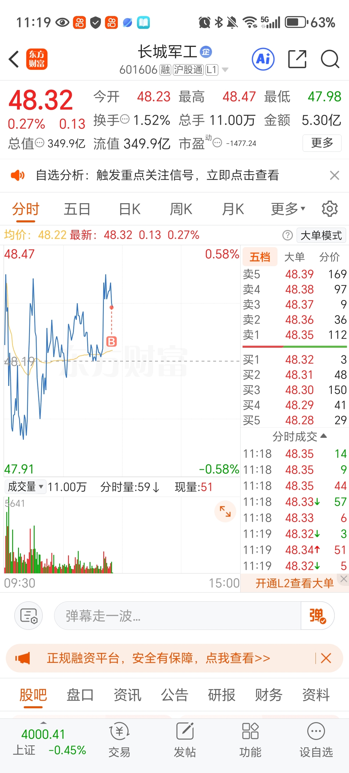 加仓军工龙头股!期待止跌上涨!