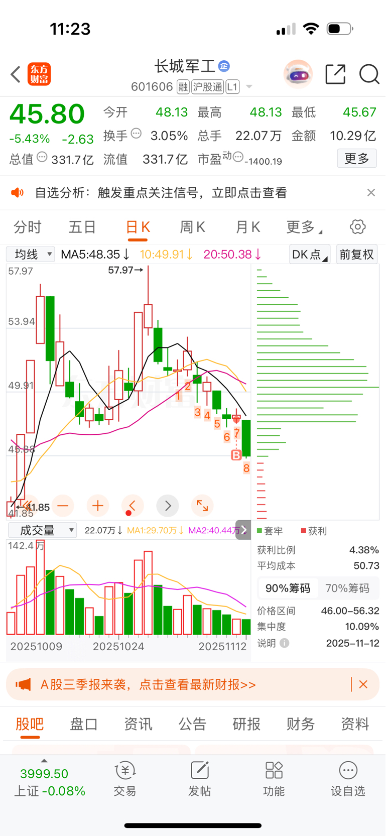 $长城军工(SH601606)$ 蛮糟心的,昨天早上在水下挂了个单、忘记了,收盘才看买进去了,真糟心