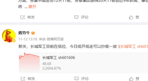 长城军工近期在底部比较弱,上周看到他的给进了点还有点担心,没有想到拉上来低吸跟着做成功了