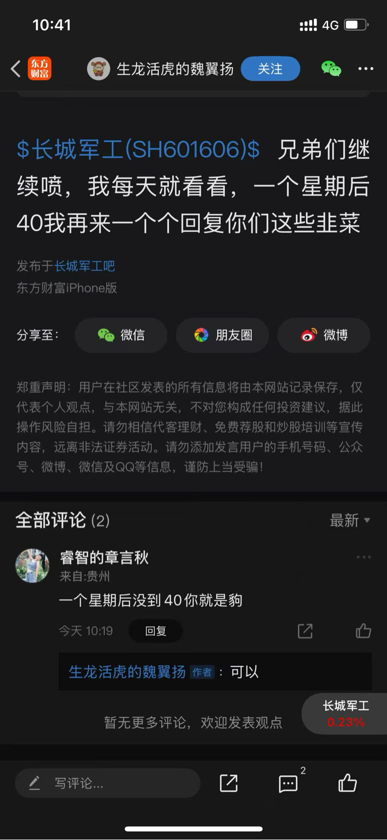 温馨提示: 1.根据《证券法》规定,禁止编造、传播虚假信息或者误导性信息,扰乱证券市场;2.用户在本社区发表的所有资料、言论等仅代表个人观点,与本网站立场无关,不对您构成任何投资建议。用户应基于自己的独立判断,自行决定证券投资并承担相应风险。《东方财富社区管理规定》