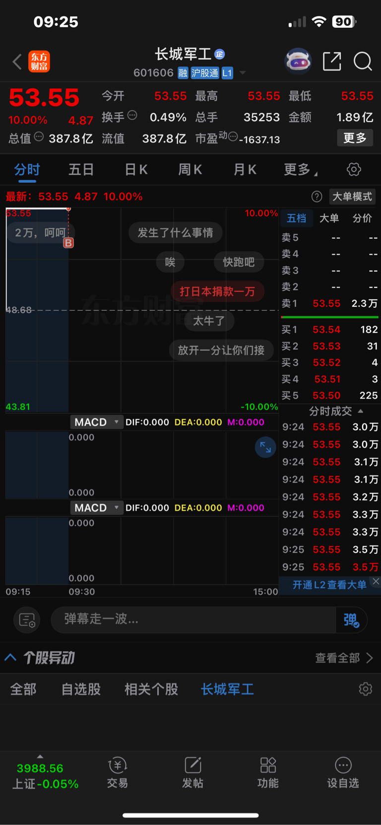 $长城军工(SH601606)$ 哪位大神解答下,为啥9点25就显示成交了?